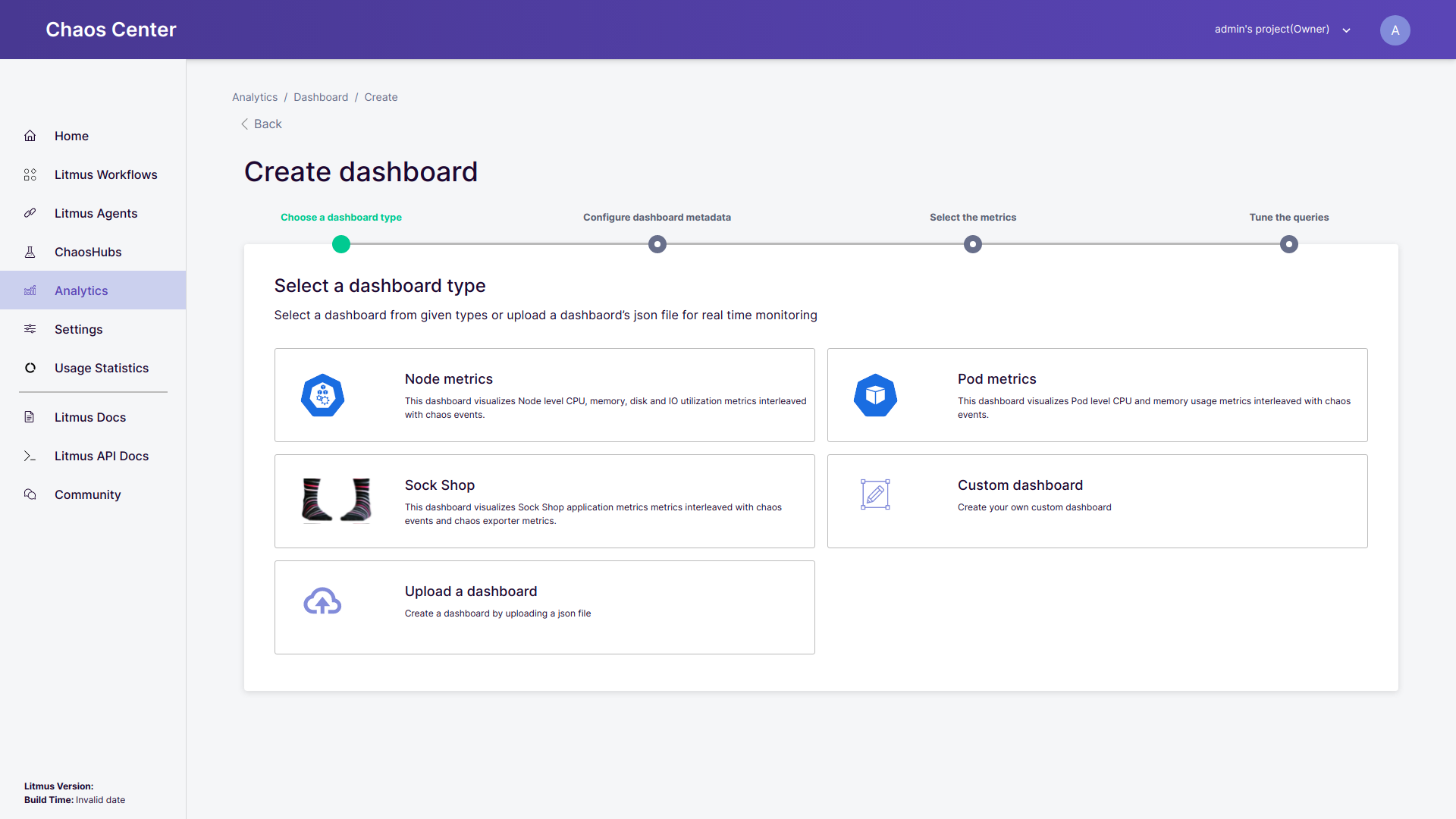 You need to select the dashboard type from the following options:
